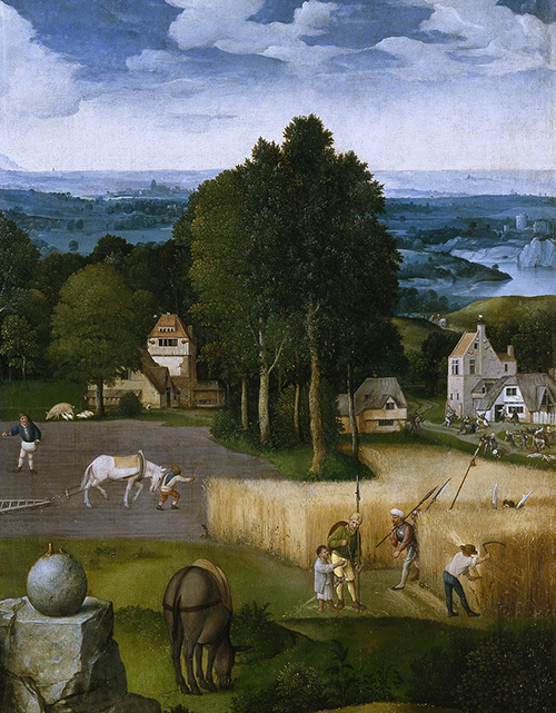 In a detail of Jean Patinir’s “Rest on the Flight to Egypt,” the farmer, the soldiers and both the bare and the wheat-filled field are seen. The soldiers, looking for Mary, Joseph and the baby Jesus, believed no one was hiding in the wheat-filled field.